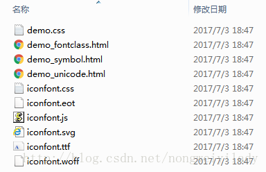 點擊下載,得到轉換后的壓縮包,名為transfonter.org-開頭。解壓可以得到如下圖的幾個文件: